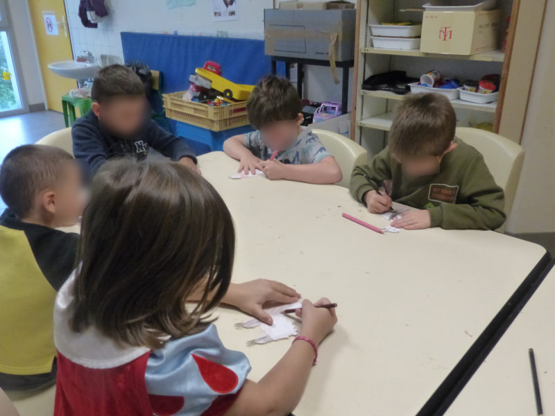 Les grands ont commencé un projet d’art en collectivité, plusieurs dessins qui à la fin, formera un cœur. On fini vite ses dessins et on va rejoindre les moyens pour faire un Just Dance. Ils ont finit la journée en beauté avec le grand cache cache dans le sentier pédagogique.