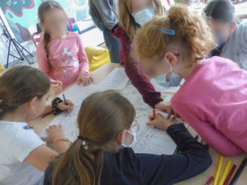 Les grands ont commencé un projet d’art en collectivité, plusieurs dessins qui à la fin, formera un cœur. On fini vite ses dessins et on va rejoindre les moyens pour faire un Just Dance. Ils ont finit la journée en beauté avec le grand cache cache dans le sentier pédagogique.