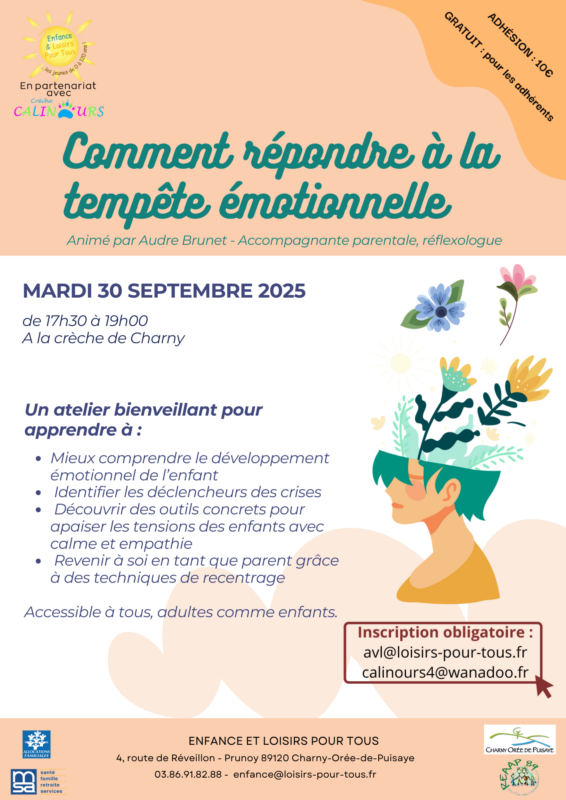 Venez découvrir comment les accompagner avec bienveillance lors de notre atelier animé par Aude Brunet, accompagnante parentale et réflexologue.